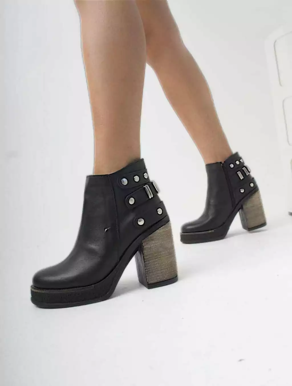 BOTA DE CUERO , TACO DE 10 cm CON PLATAFORMA DE 2 cm