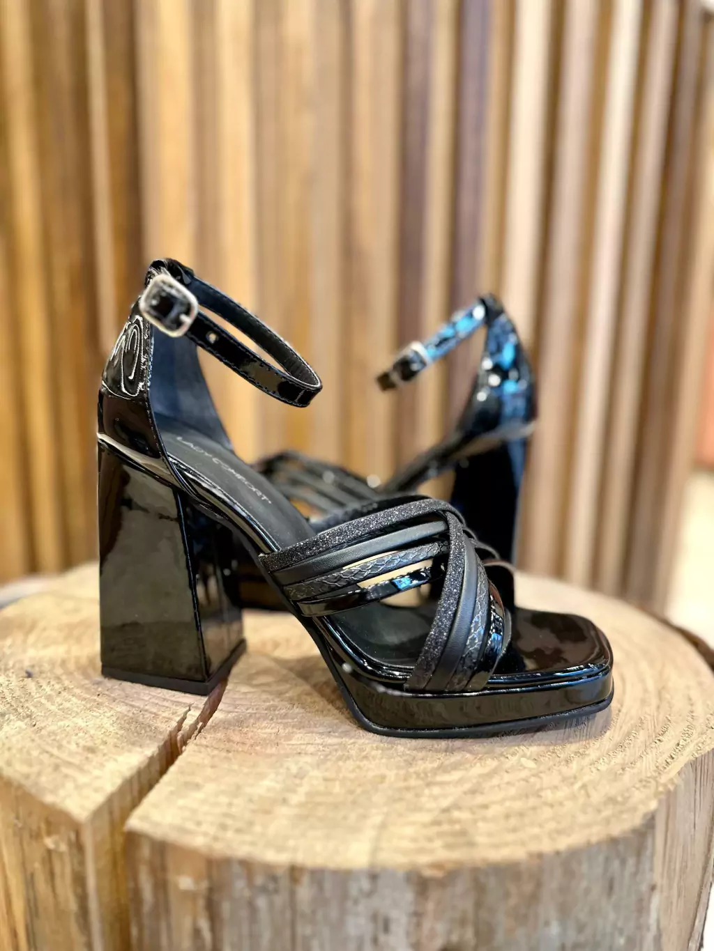 SANDALIA 4 TIRAS TALON CERRADO PLATAFORMA DE 10 cm NEGRO
