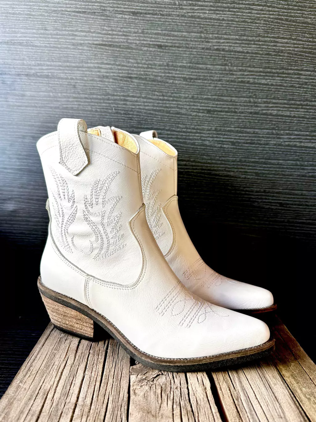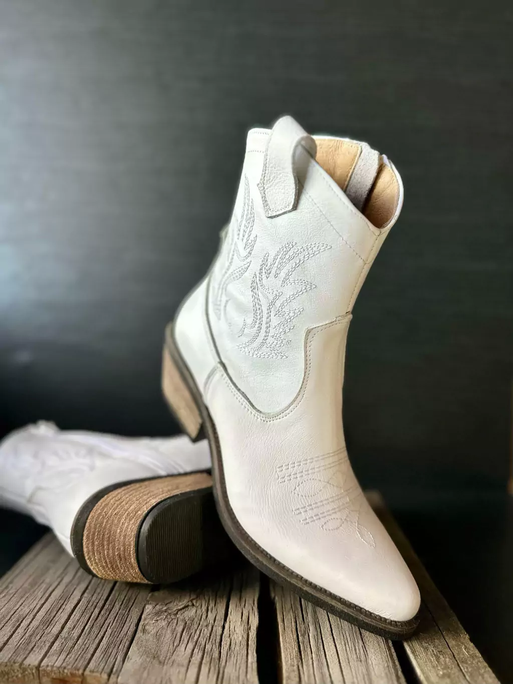 Texana TEXAS BLANCA. Capellada de cuero. Cierre en lateral para fácil acceso con terminación en cuero. El interior esta forrado con cuero vacuno. La suela es de goma antideslizante.